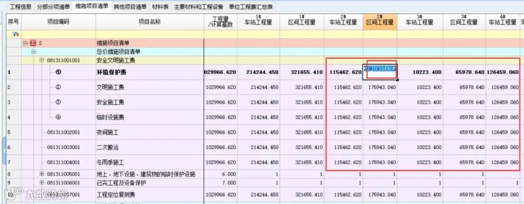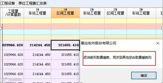 示例:将1#区间工程量的取费基数统一设置到2#、3#、4#列。如图示: