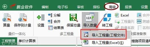 3、导入工程量:多工程量表可以多人协同编制后,使用“导入工程量”功能,将多人编制的工程量表进行合并,无需手工重复手工录入,提高工作效率。