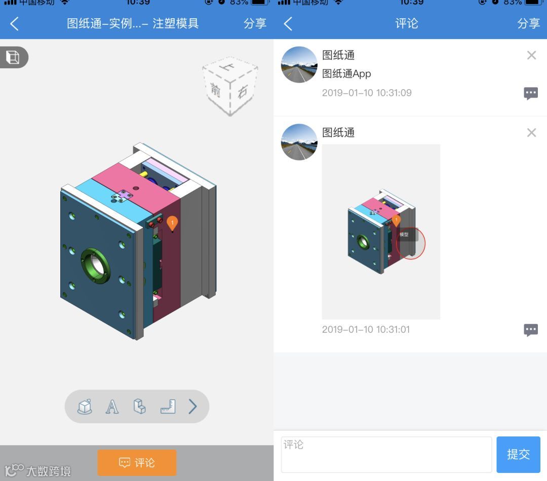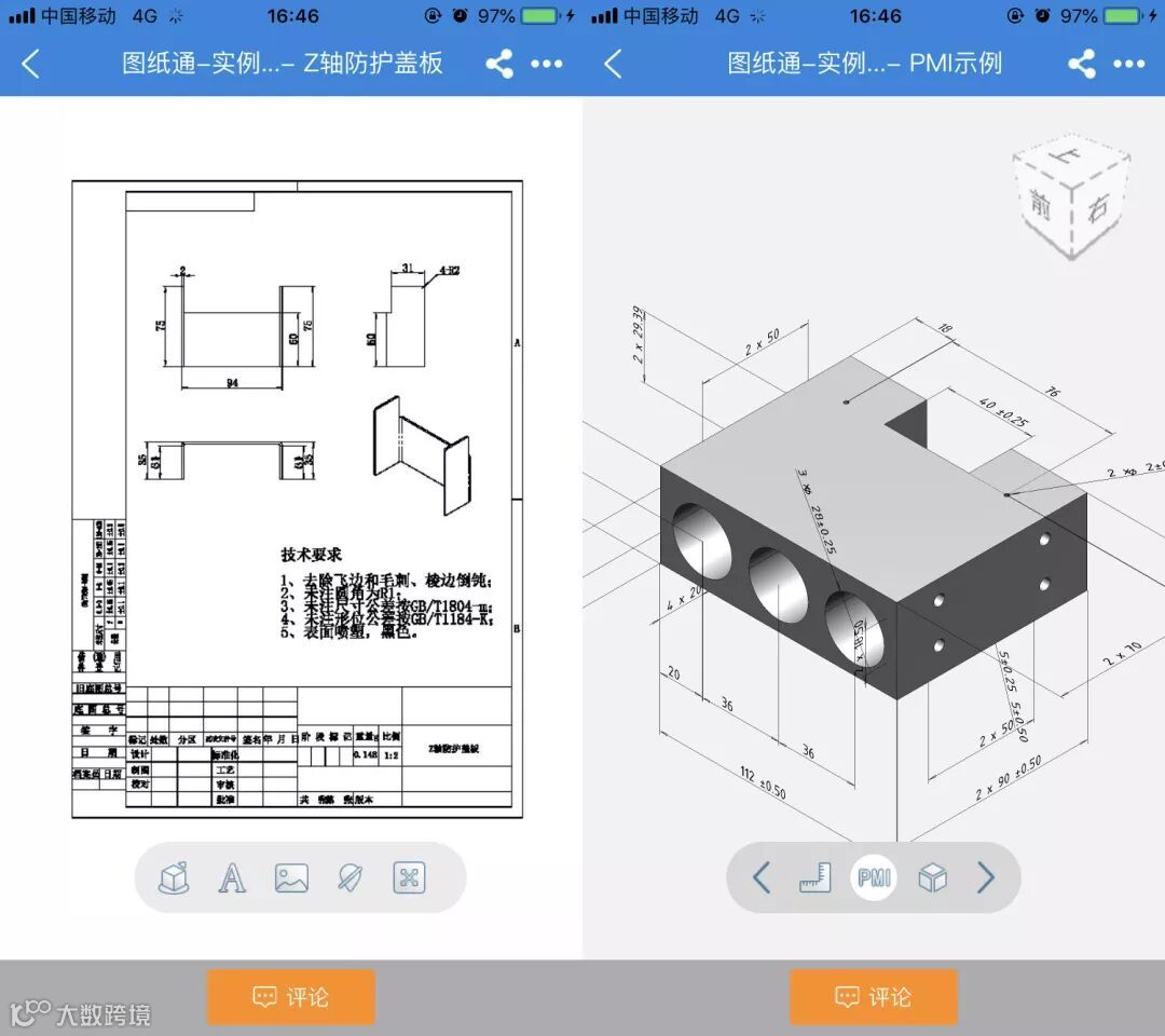 可以对3D模型和2D图纸进行批注、评论,实现基于产品图纸的技术沟通。