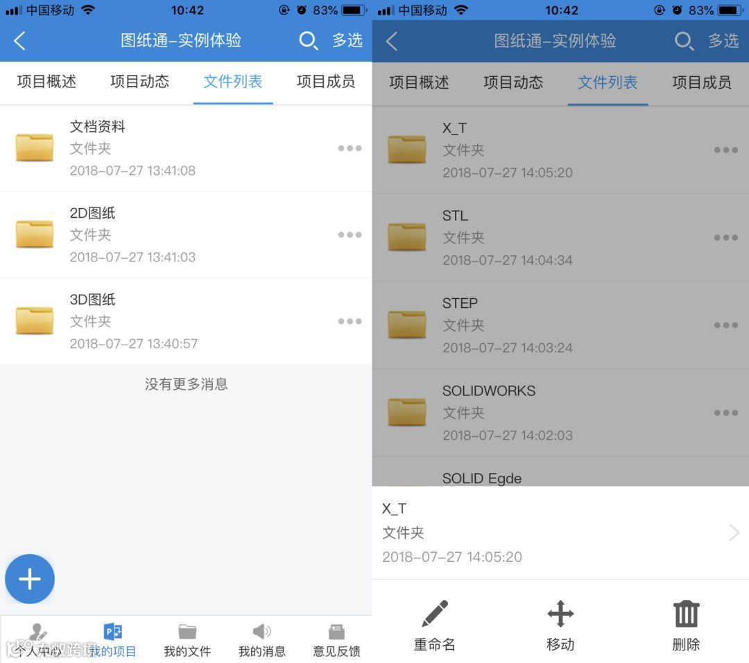 图纸通提供【我的文件】和【我的项目】两种云端的图纸管理方式,方便用户进行文件存储和项目技术沟通。