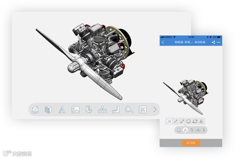 提供强大的三维图形查看、交互功能,如:剖切、结构树、测量、PMI、爆炸、平移、缩放、旋转等3D互动功能,让用户可以快速、顺畅的交互体验3D模型和2D图纸。
