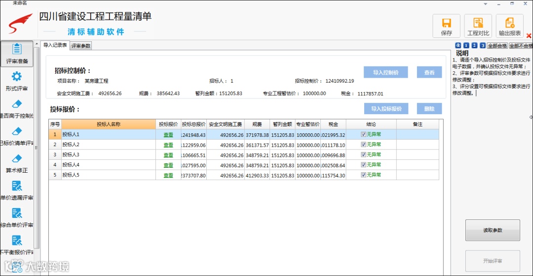 为使招标人、投标人及评标专家能更规范、更便捷的参与到招投标活动中,减轻企业负担、提高招投标过程的效率。鹏业软件参考招投标过程中所积累的经验,以川建造价发[2014]648号 关于印发《四川省房屋建筑和市政工程工程量清单招标投标报价评审办 法》的通知、川建造价发[2016]683号 四川省住房和城乡建设厅关于印发《四川省房屋建筑和市政工程工程量清单招标投标报价评审办法答疑》和《评标表格调整》的通知、川建造价发〔2018〕804号 四川省住房和城乡建设厅关于进一步规范工程量清单招标投标报价规费计取和评审的通知等为基础,专门为招标人、投标人及评标专家开发了 “四川CJZ清标软件”,使招投标活动全面进入电子化时代,辅助业主和代理机构快速进行商务报价清标,确定合适的工程伙伴;帮助投标人模拟清标,及早发现疑似问题,快速完善商务报价;为建筑业公开、公平、公正的举行招投标活动规范流程、保驾护航。