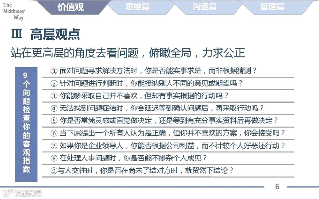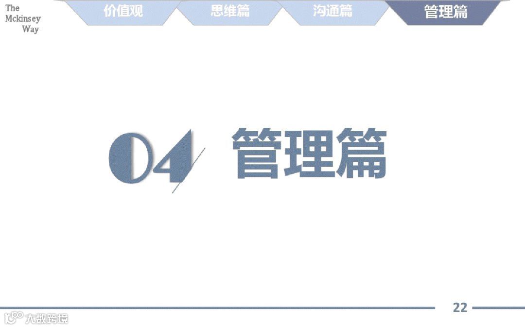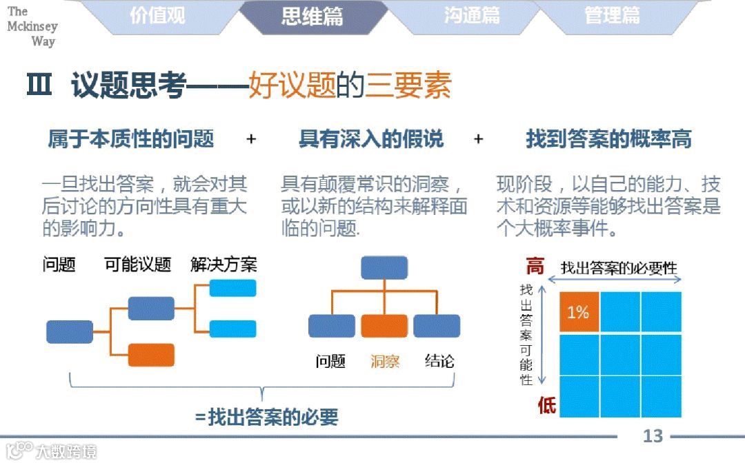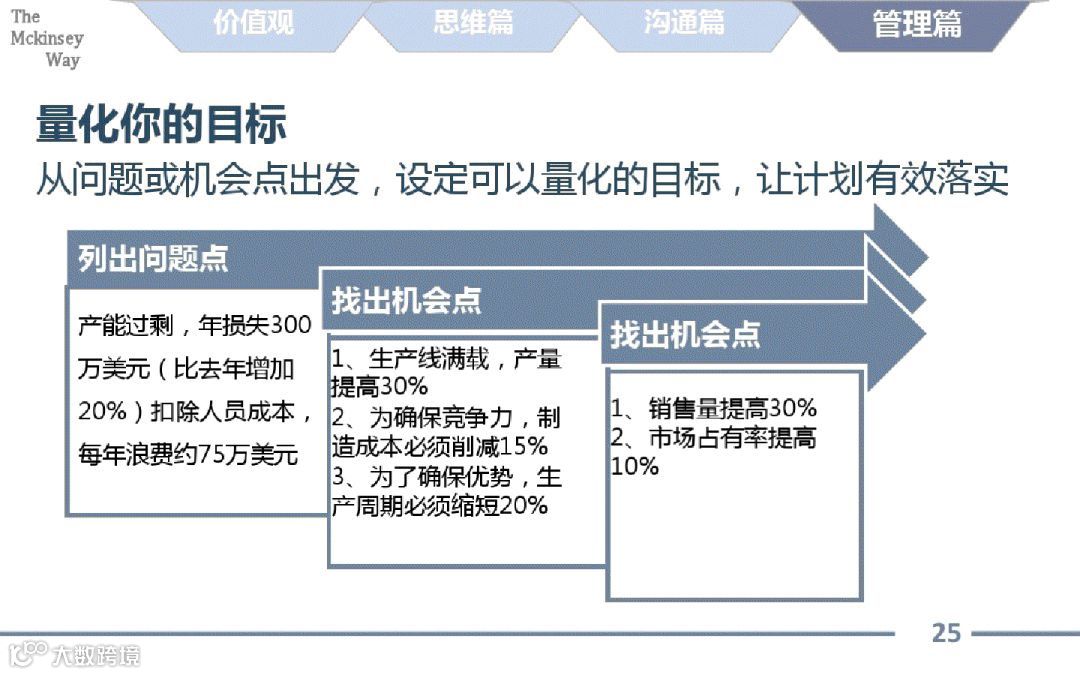 作为世界最顶级的管理咨询公司,麦肯锡有着很多被各大公司视为精华的方法。我们的工作,其实就是通过不同的手段,达到解决问题、实现目标的过程。在这个过程中,选择好的方法至关重要。