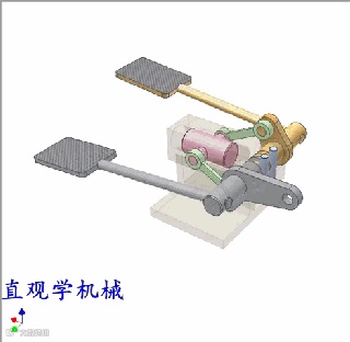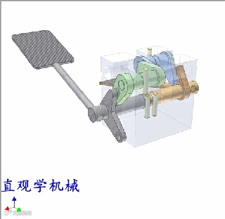 解析:输入为两个同轴水平旋转轴的踏板(粉色和紫色)。输出为垂直轴。