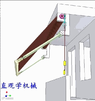解析:转动棕色可拆卸曲柄,通过蜗杆驱动器滚动或展开屋顶,从而露出或覆盖阳台。重力保持屋顶张力。黄色条和两个绿色条之间没有相对运动。它们之间的旋转接头仅用于容易装配。
