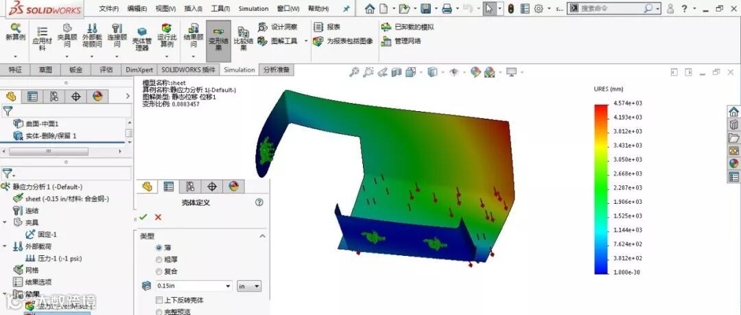 使用SOLIDWORKS Simulation壳单元分析的流程如下: