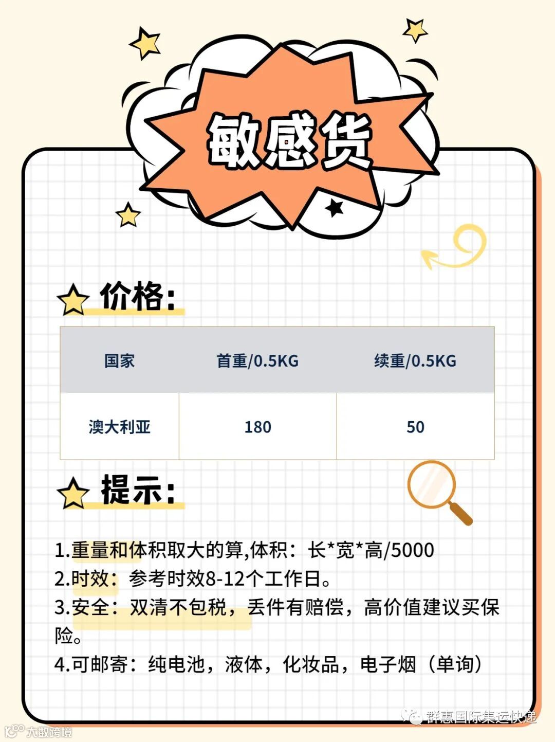 报价:不含目的港商业清关费用,申报价值超过1000AUD会产生85AUD/BL的商业清关费用,付税方承担。