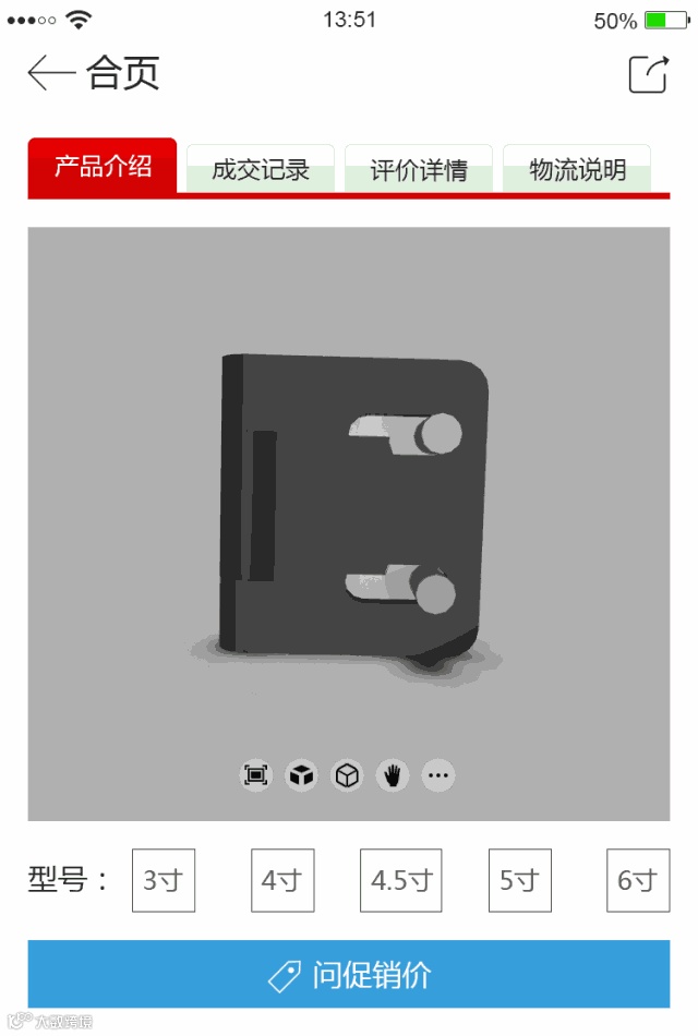 盛行移动端的H5页面,嵌入3D秀秀展示模块,能促进用户购买的欲望,并通过互联网的高效传播,更好的将产品推送至用户手中。
