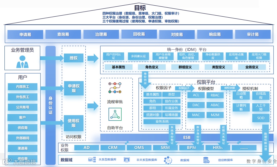 通过角色梳理、权限模型梳理、权限规则制定、技术能力支撑等建设,支撑业务授权过程高效、平稳、合规;