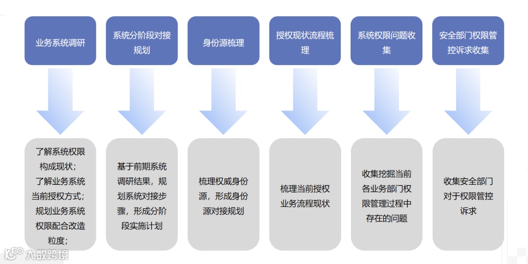 权限治理第一步,多方调研论证,在充分了解业务权限、身份源、授权流程现状及后续项目建设重点诉求的基础上,采用多种方式,改变现有松散的权限管理体系,将下游业务系统分散化、各自为政的权限进行集中回收。