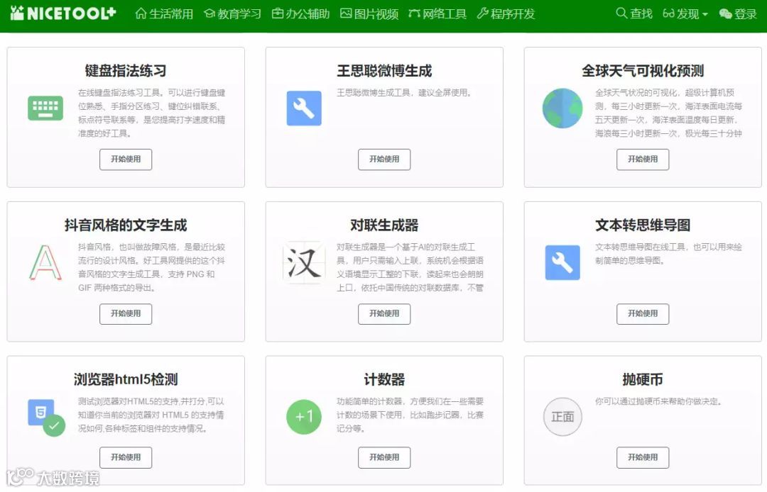 这是一个包含近1000个小工具的网站,无需载,在线使用。想要体验更多功能,但没必要单独安装软件。在NiceTool中即可快速实现。小工具太多,可能不太好浏览。你可以在网页右上角的搜索框里输入关键词,快速检索想要的小功能。