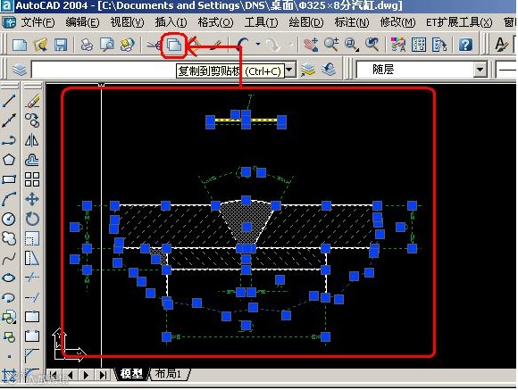 2、选择需要复制的图形,用“复制”工具进行复制;