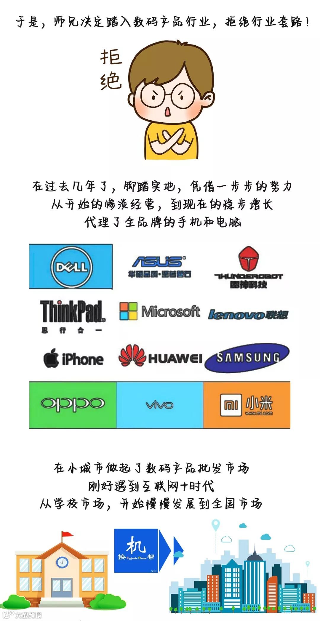 现在,广东省很多高校都有自己的代理。想当年大学期间,师兄也是通过数码行业积累了不少启动资金创业,追寻自己做品牌的梦想。现在师兄也在学校不断找优秀的校园精英代理,回馈校园。