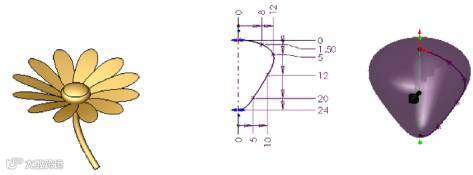 (12) 单击【分割线】按钮,出现【分割线】属性管理器,【分割类型】选中【投影】单选按钮,【要投影的草图】选择“草图 3”,【要分割的面】选择“花蕾”,单击【1 确定】按钮,建立分割线特征,如图 7.66 所示。