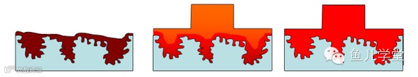 有T处理剂的酸蚀后之金属基材,塑料射入产生脂与胺的反应,两者进行交换并融合,纳米孔洞中很快就被两种反应物“占满“,塑料结构立即产生锚栓效应紧固在金属上。