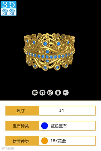 WEB 3D即3D秀秀在珠宝产品的表现力上有着迷人而强大的实力,通过这一新型的强大的在线虚拟现实技术,可以将珠宝产品真实三维还原,多角度观看、任意拖拽,将目前现场才能解决的交互展示问题在互联网上解决。具体功能特点如下: