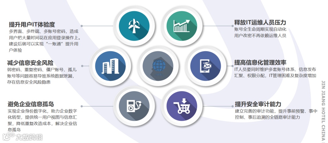 这些问题随着锦江酒店数字化转型日益深入,还将愈发显著,甚至直接阻碍其数字化转型发展步伐。更值得一提的是,锦江酒店庞大的酒店规模与企业人员,甚至酒店和人员还有不同类别的划分,导致身份账号与访问控制管理愈发的复杂和困难。