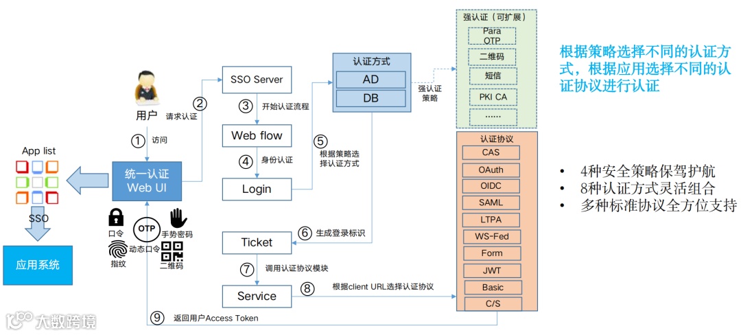 提供身份数据管理的基础服务能力,系统接入整合能力以及业务扩展能力,构建统一的身份认证系统架构,提供系统集成标准,避免重复投入,降低后续更多平台接入与管理复杂度和成本。