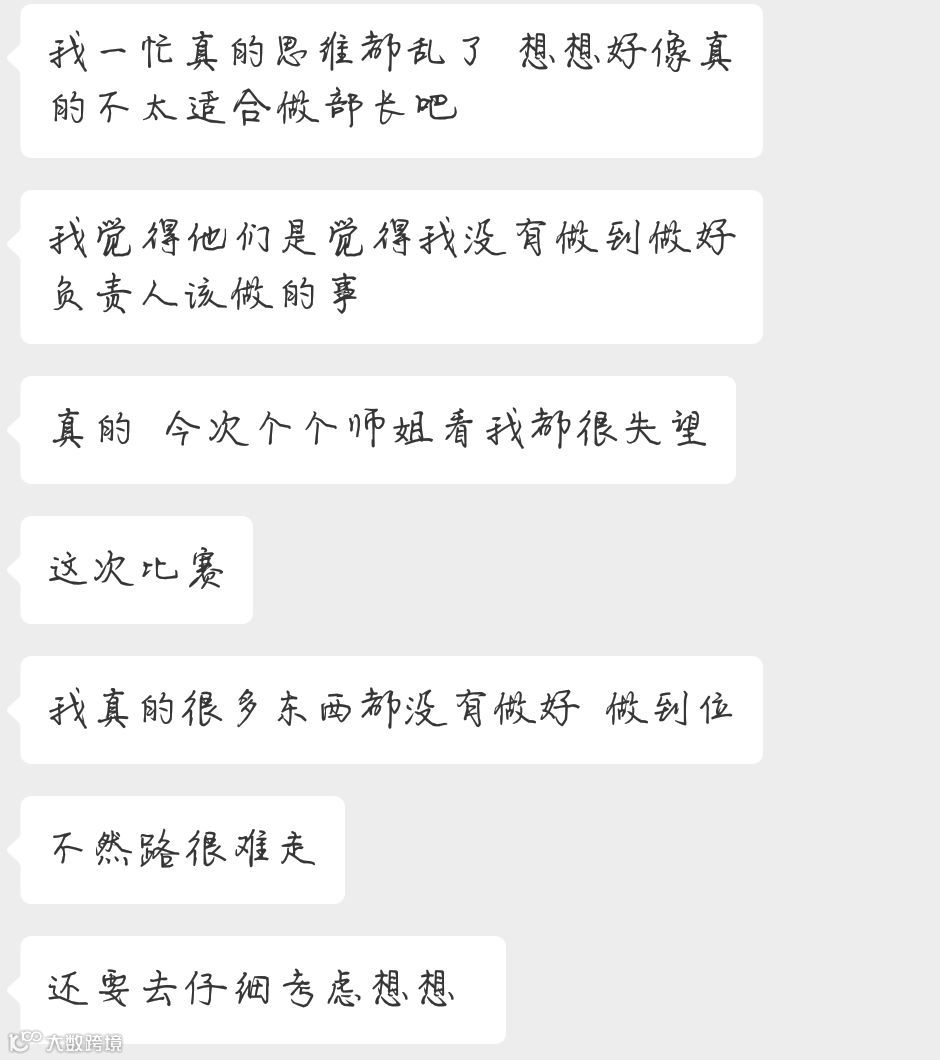 工作出现大问题,内疚,不安全部涌上心头。我觉得我没有能力去承担这份责任。我真的能像师兄师姐那样做的那么好吗?