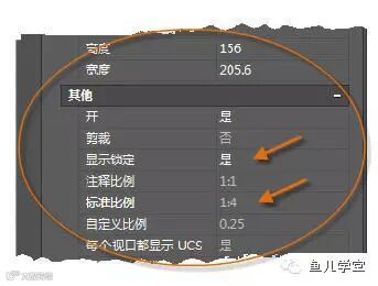 在“特性”选项板中,从下拉列表中指定标准比例 1/4" = 1'-0"。此操作将模型空间的视图精确缩放为 D 尺寸的图形。还可以将“显示锁定”特性从“否”设置为“是”。这将防止意外显示对视图进行的更改。