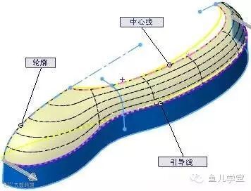 4) 放样曲面与扫描曲面。遥控器的部分形状将通过一系列草图轮廓以及引导线放样生成,另外的部分则是通过引导曲线扫描得到。