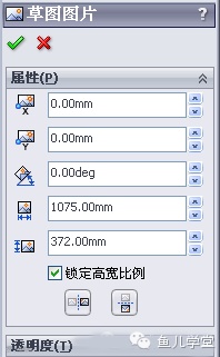 步骤 5 透明度。展开透明度选项区,选择 【用户定义】,单击图片中的白色背景区域来重定义透明颜色。设置 【透明度】为 1.00。单击 【确定】。退出草图,命名为 “Side View Sketch”。