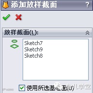 步骤 32 显示草图。显示之前用于创建放样曲面的草图 ,注意不要显示在步骤 26 中添加的截面。