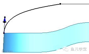 1) 草绘样条曲线,其中一个端点与引导线 (步骤18 中创建)端点重合,且位于直纹曲面边角处。