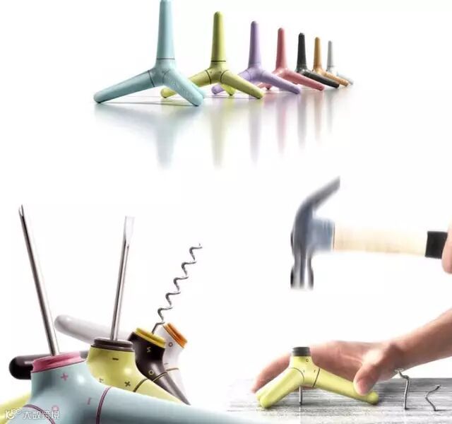 在家免不了要安装东西修修补补的时候,这款名为Coral的家装工具,由设计师Jinyoung Choi设计,当不使用的时候可以给它盖上帽子保护它,而在使用的时候,三角的定律能发挥它的很大作用。包括了螺丝刀、开瓶器。尤其是打铁钉的时候很好的保护了手,自由力度的发挥将其稳固笔直的安全打进去。能解决活儿不少问题呢。这个创新的设计漂亮又实用,这么一套丰富多彩的多功能工具有没有让你有新鲜的感觉呢,有想置换家里那套的冲动吗?呵呵。