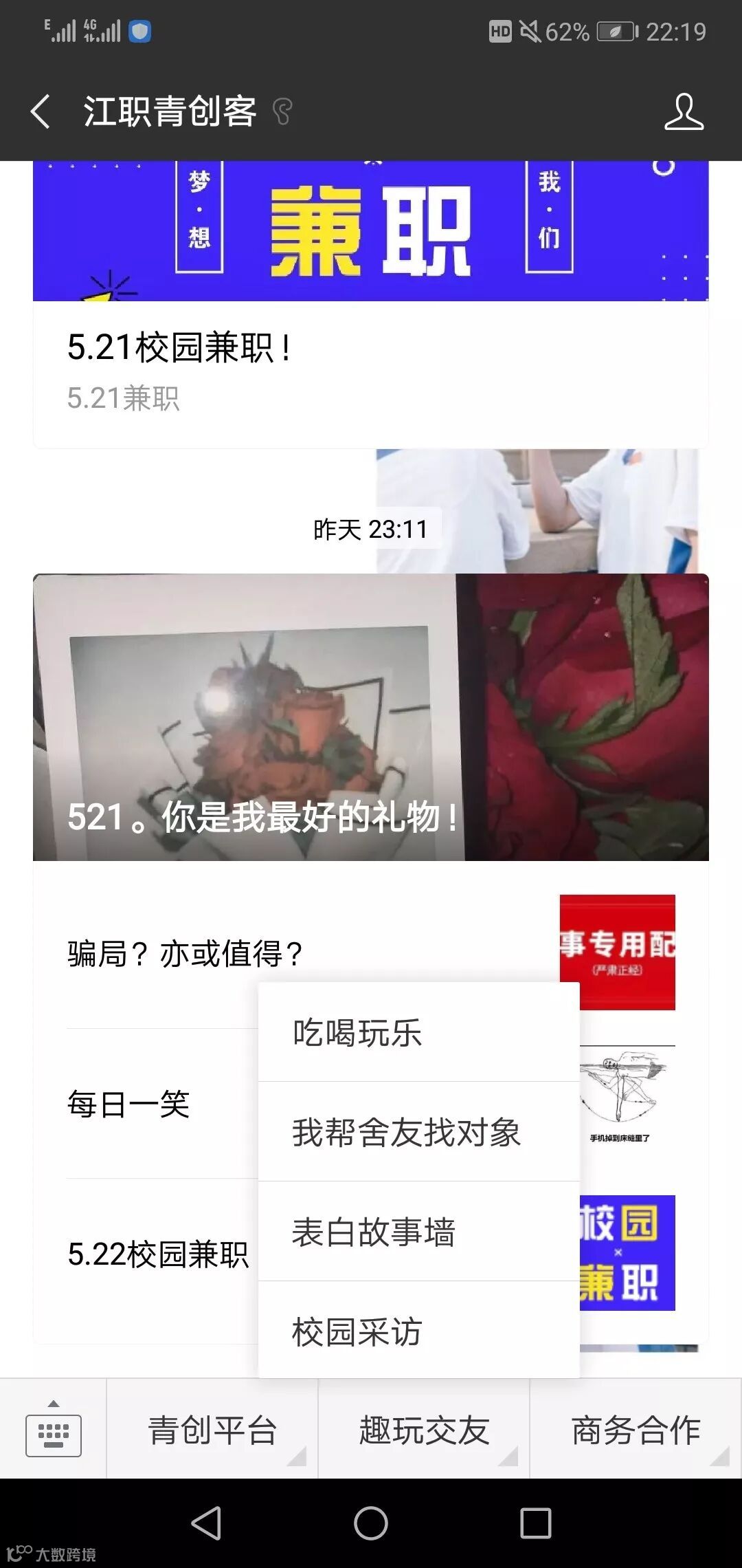 2、在青创客菜单栏趣玩交友中打开我帮舍友找对象可以找到我们栏目的历史推文哦~