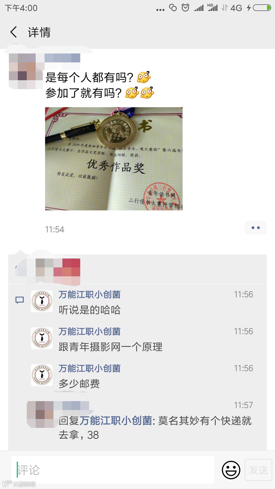 却收到评论说很多人都获奖了