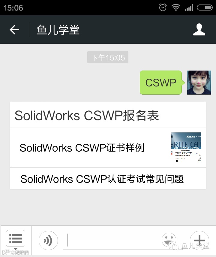 关注“鱼儿学堂”公共微信账号,回复“CSWP”了解更多信息。