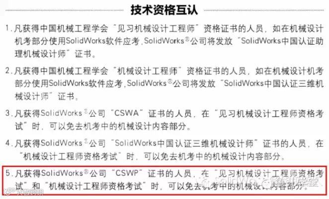 通过CSWP认证,在进行见习机械设计工程师,以及机械设计工程师认证时,可以免考上机部分。