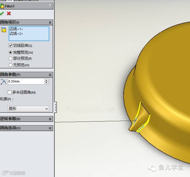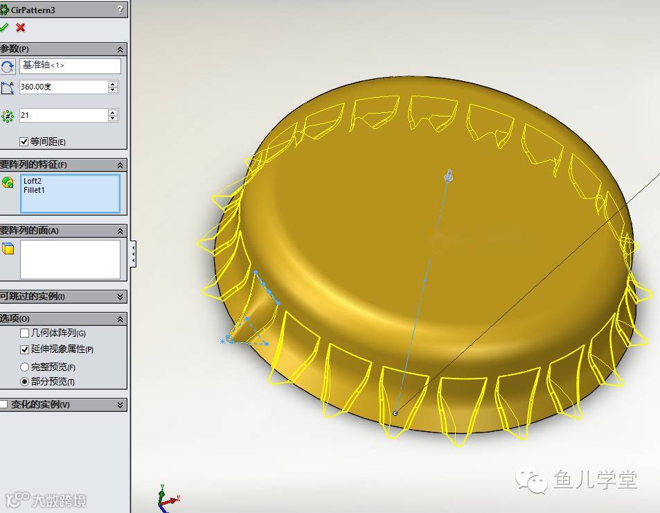 11接着把放样凸台和圆角特征都进行圆周阵列复制