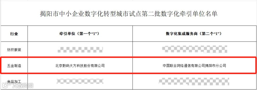 近日,揭阳市中小企业数字化转型城市试点公布第二批牵引单位,数码大方入选五金制造行业的牵引单位(第一个“1”),并与数字化集成服务商(第二个“1”)中国联通组成“1+1”联合体。联合体双方将通过技术融合与资源整合,为揭阳五金制造业企业提供更加全面、高效的数字化转型服务,共同推动数字化转型工作的深入开展。