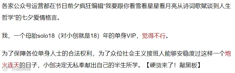 七夕这天上课的翘课,上班的翘班。楼下晒太阳的阿猫阿狗可能都在谈恋爱呢,总之千万不要迈出家门一步。这么热的天,是WiFi不够强还是空调不够凉,为什么要离开房间的床?