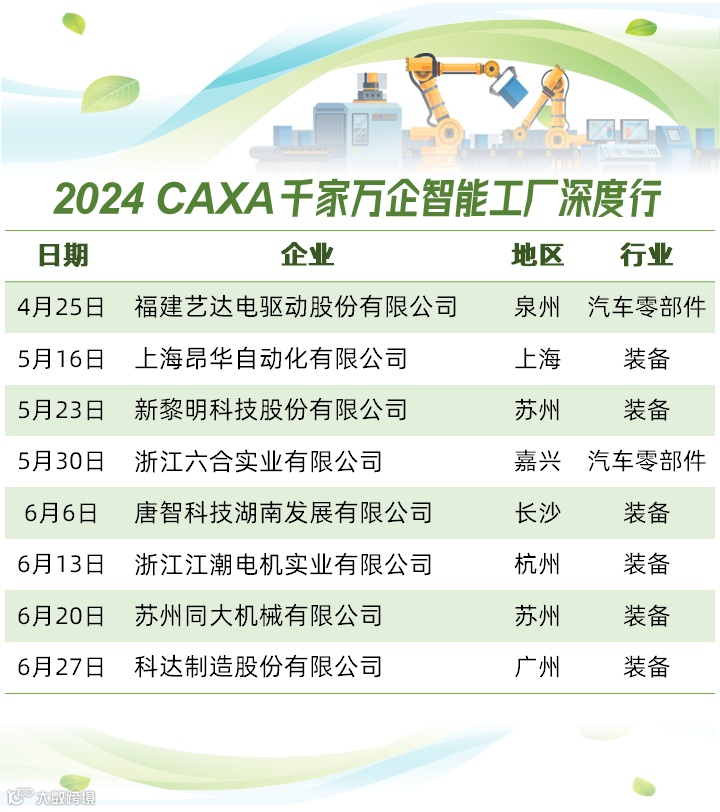 2024CAXA千家万企智能工厂深度行活动火热进行中,欢迎大家报名参加。