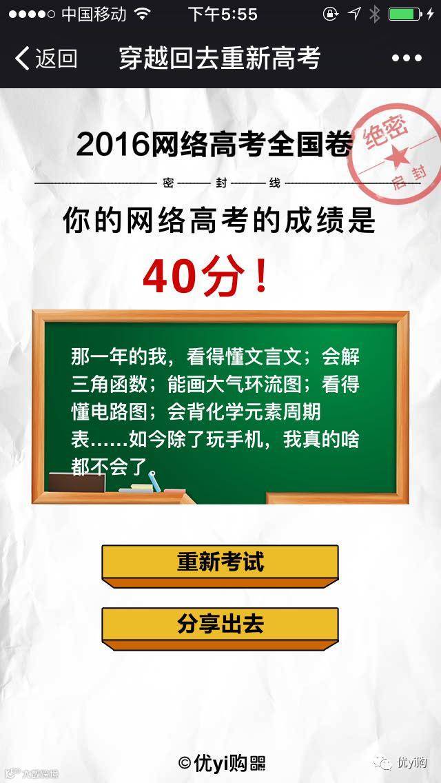 今天出了个小应用,叫做重回高考测试,yi购菌一看。哎呀妈呀,曾经身为学霸的我要震一震雄风,于是乎。。。