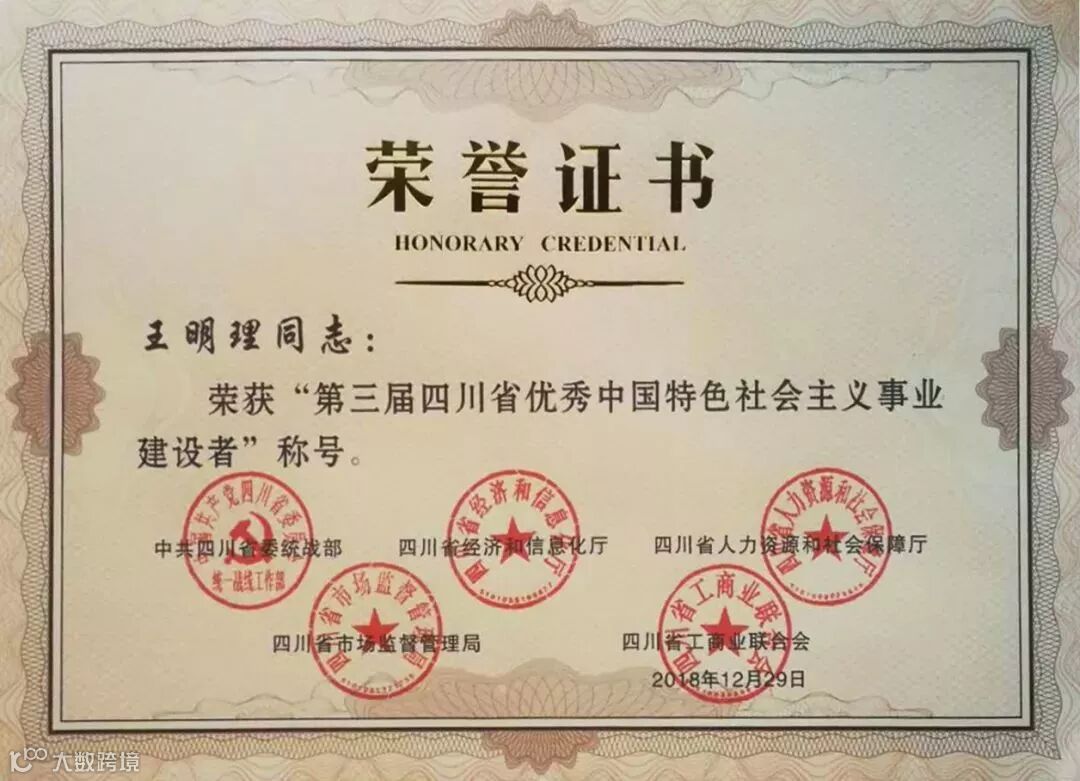 12月29日,由四川省委统战部、经济和信息化厅、人力资源社会保障厅、省市场监管局、省工商联共同开展的第三届四川省优秀中国特色社会主义事业建设者表彰大会在成都金牛宾馆召开。省委常委、省委统战部部长、省总工会主席田向利,省人大常委会党组成员、副主任叶壮,全国工商联副主席、省政协副主席、省工商联主席陈放等领导、优秀企业家代表及媒体代表数百人出席此次会议。七彩林科总经理王明理凭借在乡村振兴领域的杰出贡献,荣获“第三届四川省优秀中国特色社会主义事业建设者”。前两届表彰大会分别于2015年、2010年成功召开。