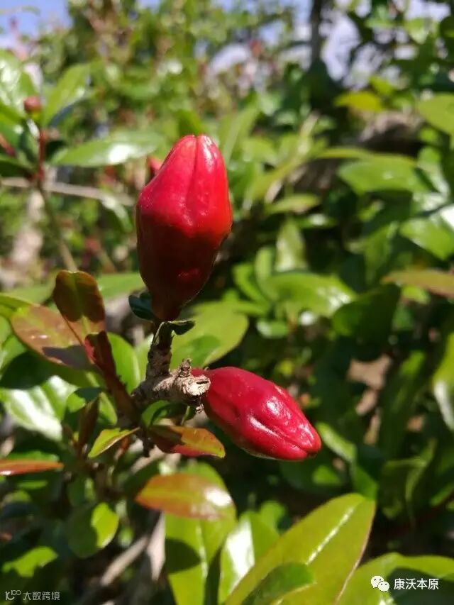 蓝天白云下石榴花开得红艳艳,芒果花开的金灿灿,等待丰收的季节到来。