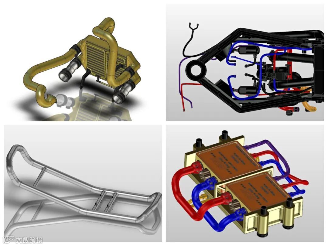 使用CAXA 3D实体设计全新三维曲线模块,能够快速绘制空间管路管线零件,极大提升了作图效率,节省作图时间。三维曲线绘制空间3D曲线具有更强的专业性与针对性。在整个摩托车模型中有大量的刹车线、管路、管线等零件,全新三维曲线模块使整个设计流程如虎添翼。