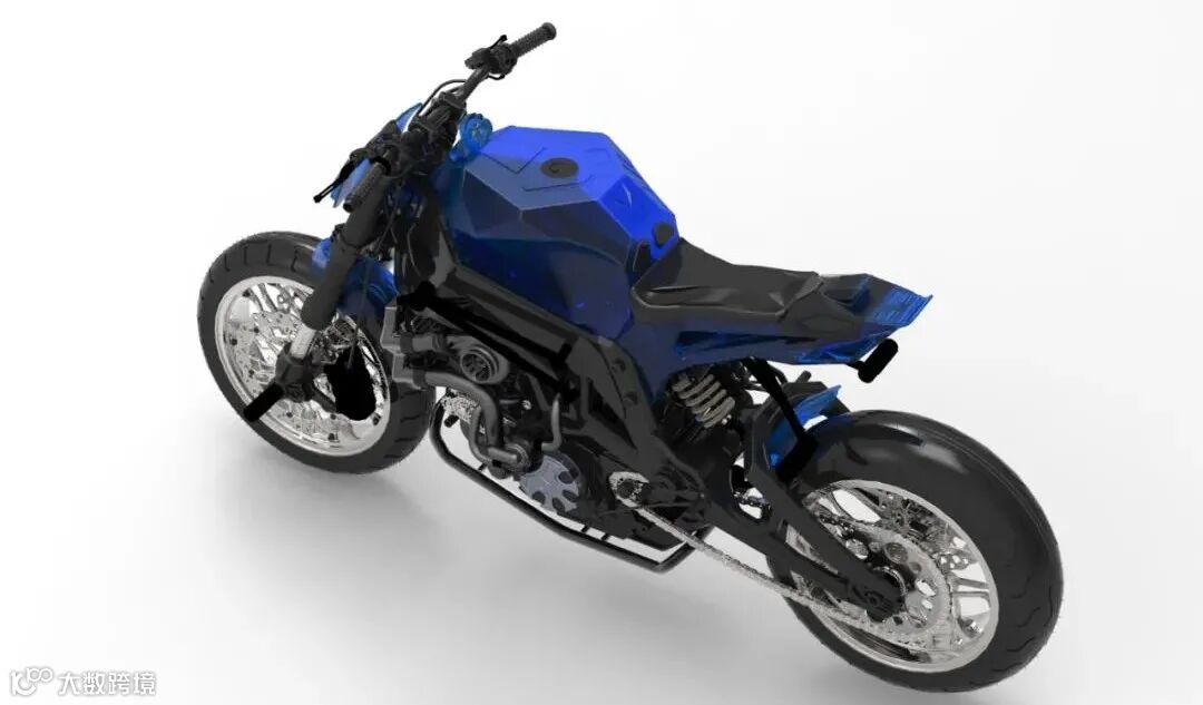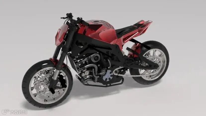 作者介绍,《重型摩托车》是根据真实的摩托车案例改制。具有一定的可加工性。同时模型结构造型复杂,设计建模能力复杂繁琐。摩托车包括:发动机、传动系统、行驶系统、操作制动系统、电气系统等五大系统。所有细节均采用CAXA 3D实体设计工程模式绘制完成。工程模式具有更严格的父子依赖关系,且可回溯查看源特征比较方便。同时在习惯其他同行软件后过渡到实体设计更加容易上手。