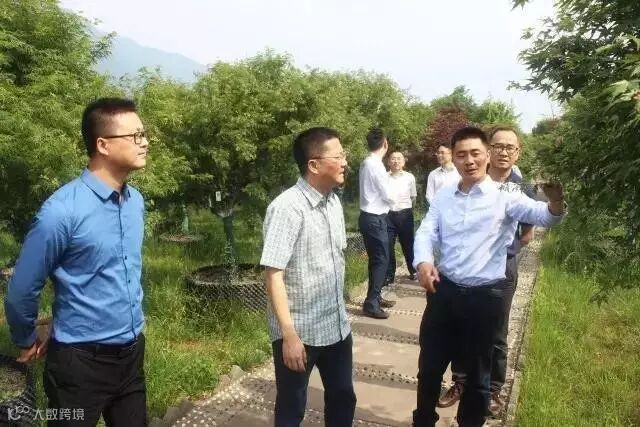 陈军(左二)一行参观长滩千亩彩色苗木核心示范基地