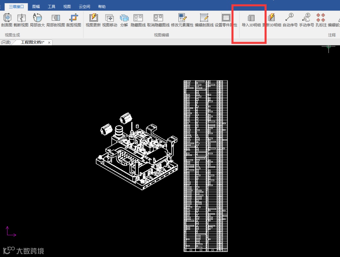 最重要的是,CAXA三维转二维投影后,能够快速将所需电子清单进行输出,几乎是一键成型——代号、名称、用量及材料一目了然。这对于加工制造型企业来说是极为重要的,能够快速输出明细,就意味着生产、采购计划能够排上日程,样机的出炉时间也就有了先天保证,给占领市场打下了坚实基础。