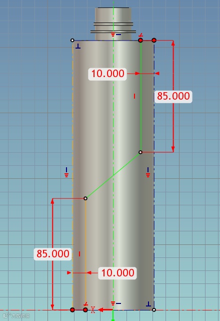35、在瓶口处新建草图,画草图。选择【投影】【构造】将边线投影到草图上,再用【2点线】画辅助线,最后再画实线。