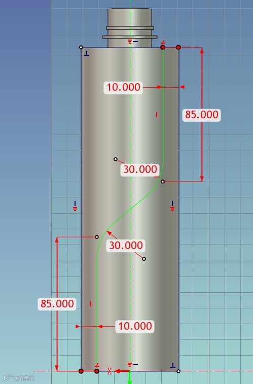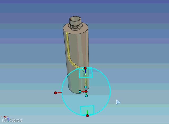 36、选择【曲面投影线】将草图线投影到瓶口圆柱体表面。