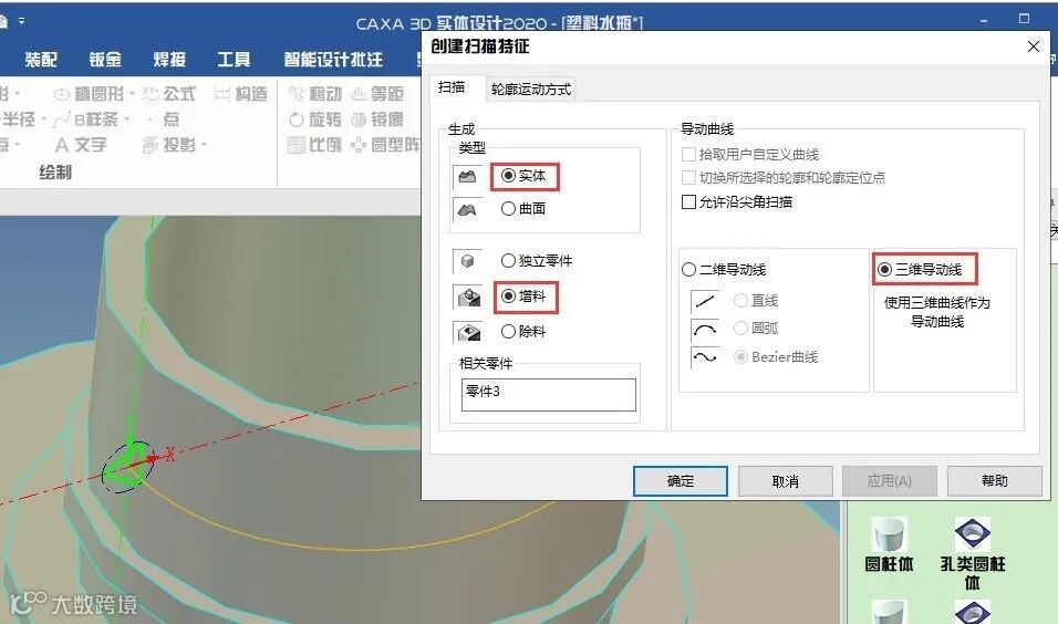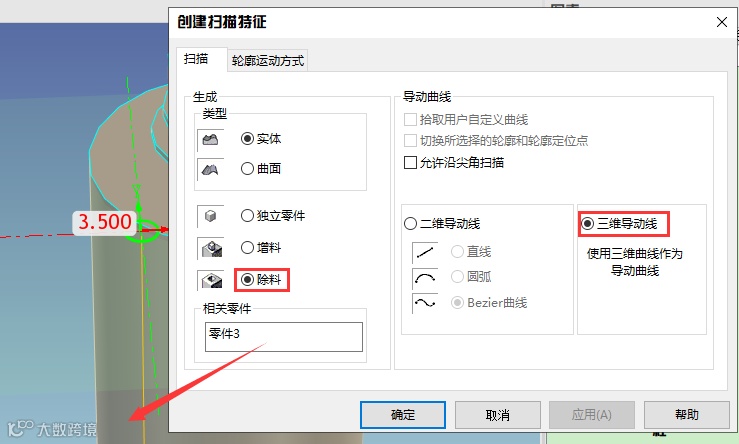 30、拾取投影线作为三维导动线。