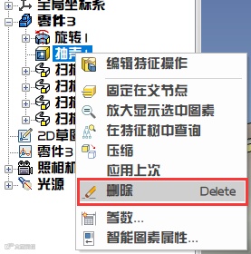 33、在设计树中将零件前的+号点开,将抽壳特征删除。