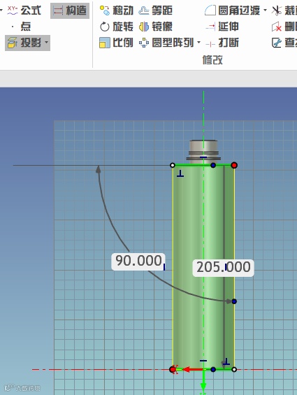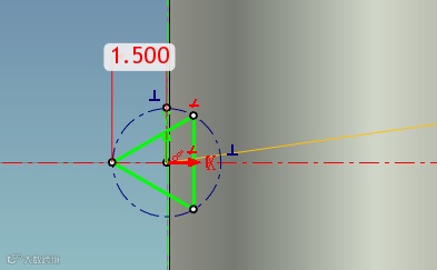 7、鼠标左键拾取未相交的圆弧端点,按住拖动使其与辅助线端点重合。