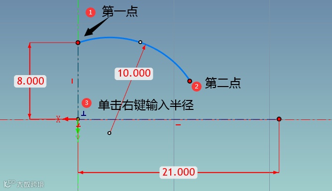 5、再用【用三点】画圆弧。